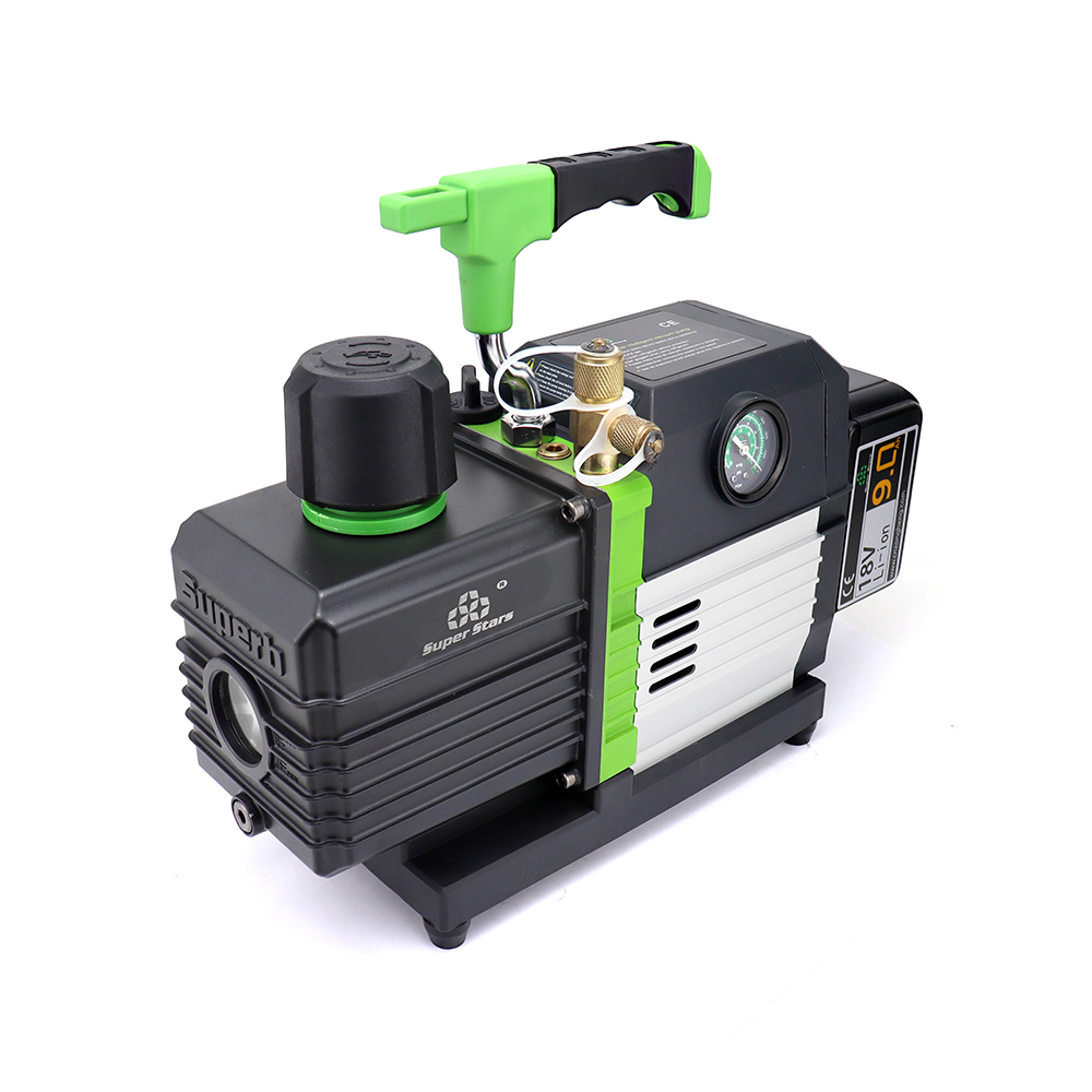 Model Super Stars ST-C4BM to profesjonalna, dwustopniowa pompa próżniowa zasilana akumulatorem Li-Ion 18V 9Ah, zaprojektowana z myślą o instalatorach HVAC pracujących przy większych instalacjach.