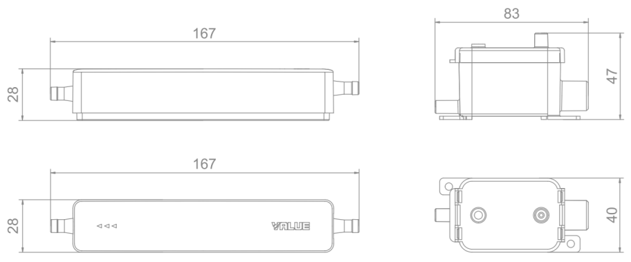 Dlaczego warto wybrać VALUE S mini?■ bardzo cicha praca – tylko 19 dB ■ kompaktowa konstrukcja – montaż za jednostką klimatyzatora ■ elektrodowy czujnik poziomu wody – brak pływaka ■ siatka filtrująca w zbiorniku zwiększająca trwałość pompki ■ wysokość podnoszenia do 10 m ■ możliwość tłoczenia kondensatu do 100 m ■ wysokość zasysania do 2 m ■ bardzo niski pobór energii – tylko 3 W |