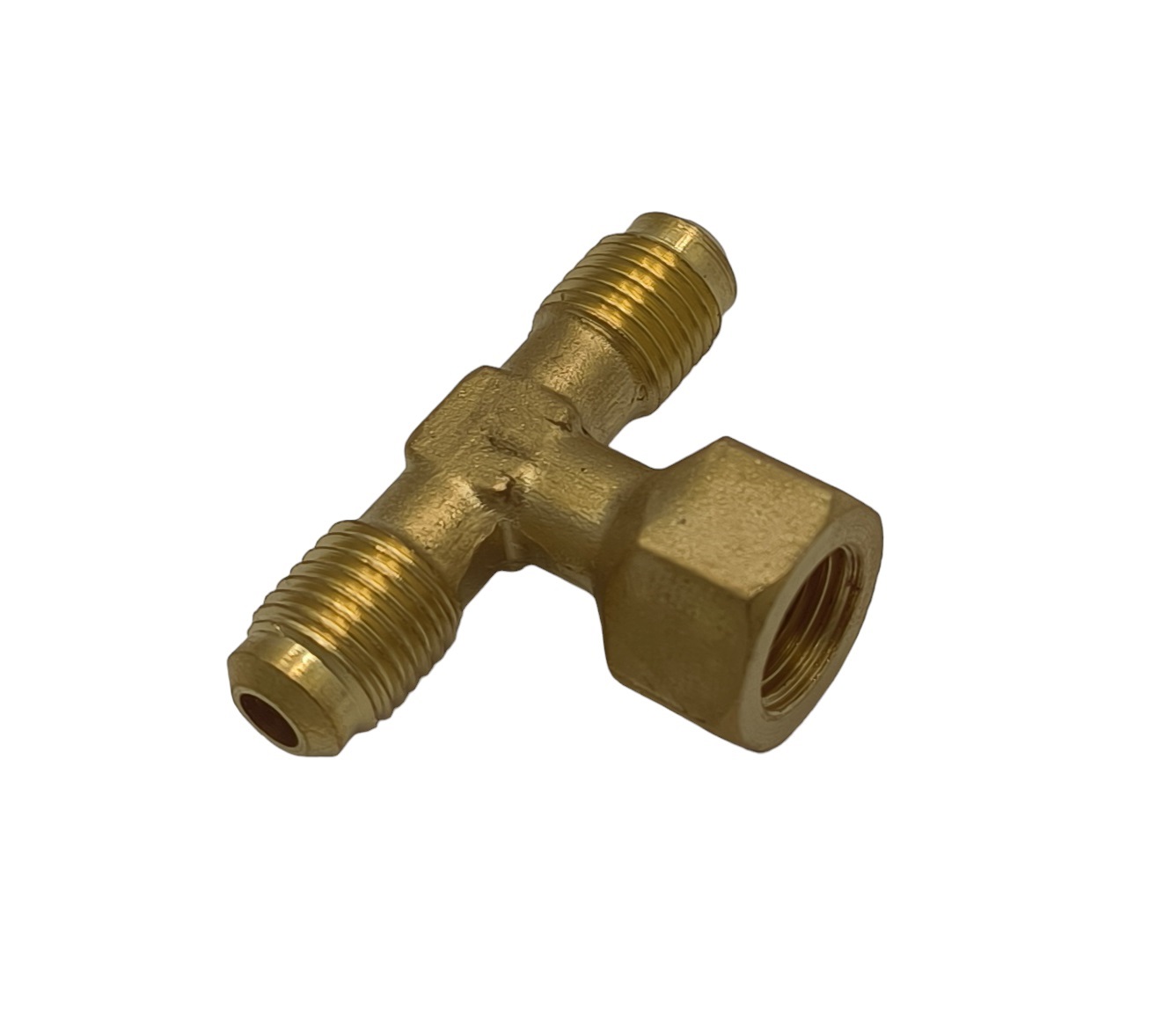 Trójnik o wymiarze 1/4 cala z gwintem typu SAE po jednej stronie, gwintem 1/8 cala NPT po drugiej stronie i ponownie gwintem 1/4 cala SAE po trzeciej stronie. Jest idealny do używania w połączeniu z instalacją manometru, próżniomierza lub innego elementu kontrolnego, który posiada zewnętrzny gwint o wymiarze 1/8 cala NPT.